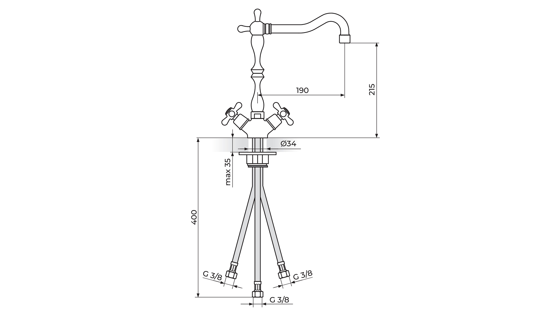 Kuhinjska armatura je namenjena za namestitev na kuhinjsko korito in primerna za uporabo s pretočnimi električnimi grelniki.